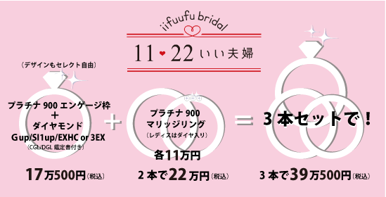 婚約指輪170,500円(税込)結婚指輪2本で220,000円(税込)