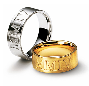 美しい筆記体にて日付や名前メッセージを刻んで
