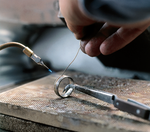 素材となるプラチナ、ゴールドは高い熱と圧力を何度もかけ